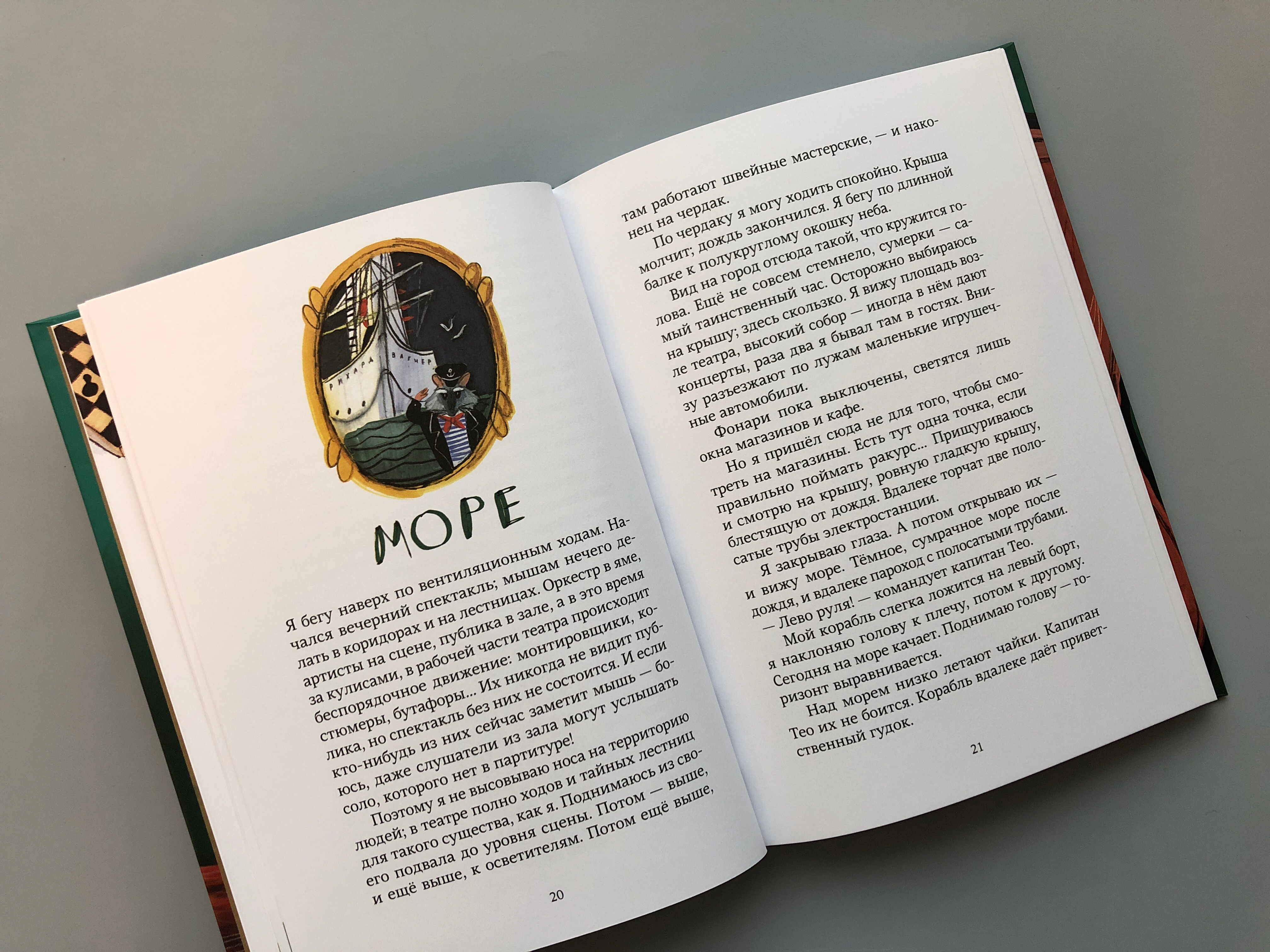 Тео и вся его семья — театральные мыши. Они поселились в театре давным-давно, но до сих пор умудрялись оставаться почти невидимыми для людей — ровнехонько пока Тео не принял решение сделать сестре небольшой подарок. Правда, для этого пришлось прогрызть огромную дыру в юбке прима-балерины. И, теперь, похоже, представлению конец. И мышам в театре — тоже. Нина Дашевская — профессиональный музыкант, поэтому ее книги полны музыки. В «Тео, театральный капитан» жизнь оркестра и музыкального театра открывается маленькому читателю с совсем необычной стороны — о ней рассказывают мыши, живущие в театре, как дома и переживающие собственные удивительные приключения. В конце книги есть сюрприз для читателей: фигурки на подставках, музыканты и их инструменты. Из них можно составить собственный оркестр и продолжить игру в театр — занавес театра изображен на одном форзаце, устройство театра в разрезе — на другом.