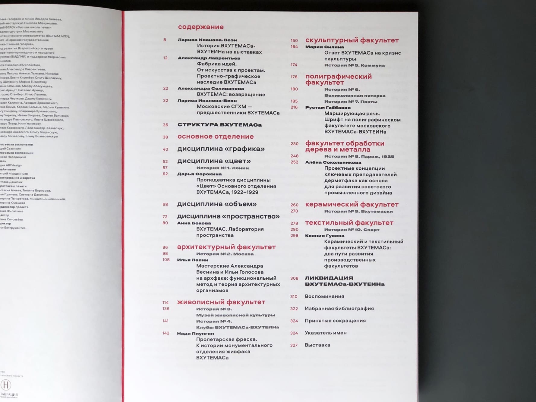 В каталоге собраны статьи кураторов выставки, научных консультантов, а также воспоминания студентов и преподавателей Высших художественно-технических мастерских, указатель имен, избранная библиография, принятые сокращения и многое другое.